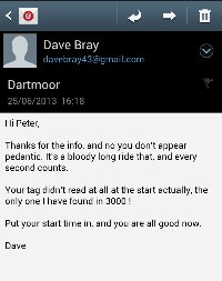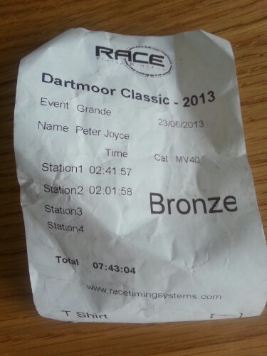 Finished 48 minutes after the gold medal time, my slowest Dartmoor of the four only to have Computer add over ten minutes to my time when I did not register on finish line … Argggh